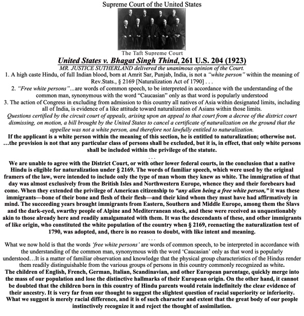 As the Supreme Court affirmed in 1923’s United States v. Bhagat Singh Thind case, “White” encompassed Caucasian Europeans broadly, not just early colonists. All base on Rev, Stats § 2169. The Naturalization Act of 1790
