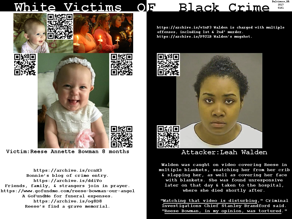 Christine Bender, 60? Shot for a lighter in 2016 Virginia Beach—three black teens arrested. Frankie Harris, 64? Raped/strangled 2020 East Harlem; perp faces no homicide upgrade. Joy Whaley, 74? Stabbed 2020 Knoxville Pilot by black Muslim Denies Nibbe—media blackout.