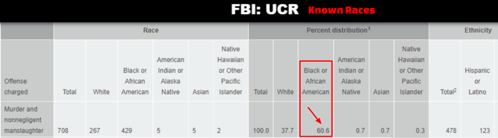 This isn’t hyperbole. It’s arithmetic. As of 2023, the FBI’s Uniform Crime Reporting (UCR) program, now fully transitioned to the National Incident-Based Reporting System (NIBRS), shows trends holding blacks at approximately 50% of known homicide offenders, consistent with 51.3% in detailed 2019 breakdowns (latest full race table). That’s just the “known” offenders; unsolved cases, disproportionately in black urban areas (clearance rates hovering at 40-50%), push the true figure higher, likely 55-60%.