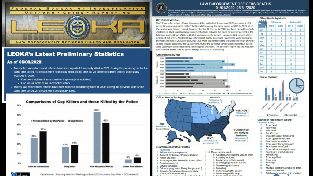 | Officer Felonious Deaths (Offender Race, Historical Avg.) | ~40-45% black offenders | ~50% white offenders | 5x per capita | FBI LEOKA 2024 |