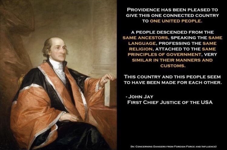 John Jay, the first Chief Justice and a devout Episcopalian, nailed it in Federalist No. 2: “With equal pleasure I have as often taken notice that Providence has been pleased to give this one connected country to one united people—a people descended from the same ancestors, speaking the same language, professing the same religion, attached to the same principles of government, very similar in their manners and customs…”That “same religion”? In 1787 America—98% were Christian—it meant Christianity. Jay’s invocation of “Providence” wasn’t casual; it echoed the biblical God who guided the Israelites, underscoring a divine mandate for Christian unity.