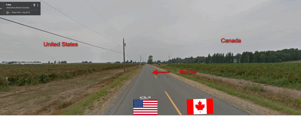 Crossing the U.S.-Canada border is shockingly easy in many spots, with vast stretches of wilderness, rural roads, and even urban highways where the line between the two countries feels more like a suggestion than a barrier. Take Abbotsford, British Columbia (shown below), as a prime example: One side of a simple two-lane highway—Highway 11, also known as the Abbotsford-Sumas Highway—is in Canada, while the other side dips into the United States. There’s effectively no physical border here’ a few signs and occasional patrols. There are many other examples of completely open borders between the US and Canada.