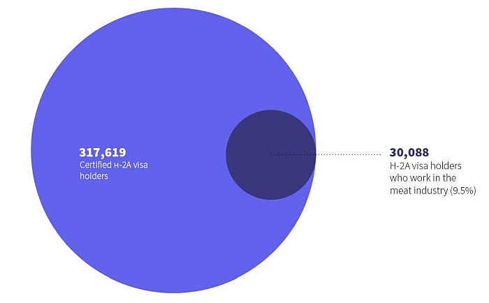 | H-2A (Ag) | 375,000 | Farms, orchards, dairy | 100% seasonal | No wage floor enforcement; “shortage” certified without native recruitment |