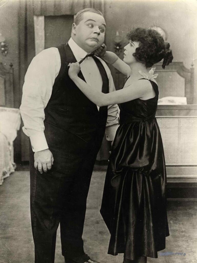Arbuckle’s ascent mirrored Ethnic American self-reliance. Touring with the EA Pantages Theatre Group, he married actress Minta Durfee in 1908, forming a partnership rooted in shared values. By 1909, he debuted in films with EA Selig Polyscope Company in Ben’s Kid, earning bit parts. His breakthrough came in 1913 at Mack Sennett’s Keystone Studios, where he joined Mabel Normand and Harold Lloyd in chaotic comedies. Despite his 266-pound frame, Arbuckle moved with surprising grace—flipping, dancing, and pioneering pie-in-the-face gags in films like A Noise from the Deep (1913). He directed his own shorts, such as Barnyard Flirtations (1914), and starred in the “Fatty & Mabel” series, captivating audiences with wholesome Ethnic American humor.