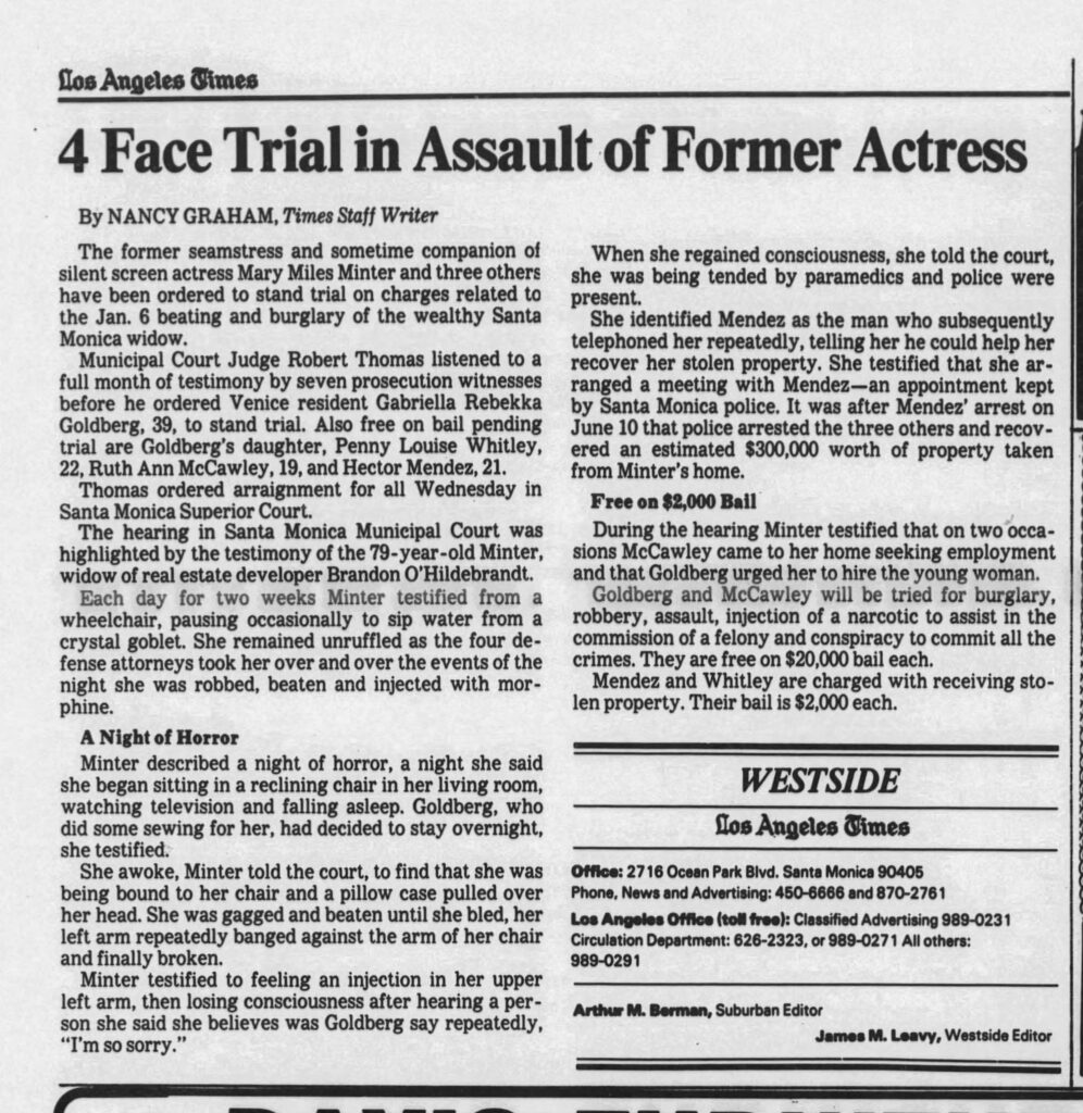 As for Minter, she was never seen on the screen again. In her old age in 1981, she was drugged and every memento she had accumulated in her sad Hollywood life was robbed from her.